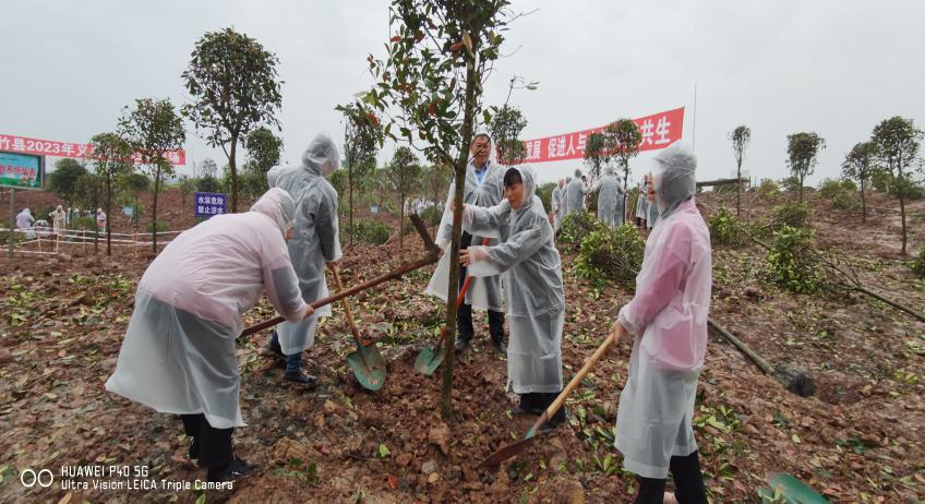 潇潇春雨,大地回春,正是万物萌发时。李志超、何长华等县领导带头上阵,身披雨衣,顶着春雨,踩着泥泞,发扬不怕苦、不怕累的精神;来自县级各部门干部职工、工人、妇女、志愿者、共青团员及少先队员奋勇当先、热情高涨、干劲十足,整个植树活动现场呈现出一片热火朝天的劳动景象。大家三人一组、五人一队,分工协作,相互配合,挥锹铲土、扶树植苗、培实新土,每一个环节、每一个步骤都做得认真细致、一丝不苟,合力种下一棵棵绿植迎风挺立,为初春大地增添了一抹生机。经过一个多小时的紧张奋战,200余名干部群众合力植树植竹800余株,绿化面积达10000平方米。